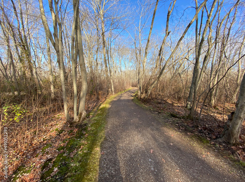 © coachwood, Fototapeta premium Dirt path in the woods on a winter morning with a blue sky