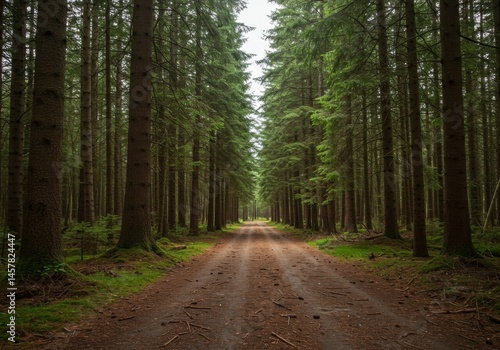 © DanadyaksaDen, Fototapeta premium Dirt Path Through Lush Green Coniferous Forest