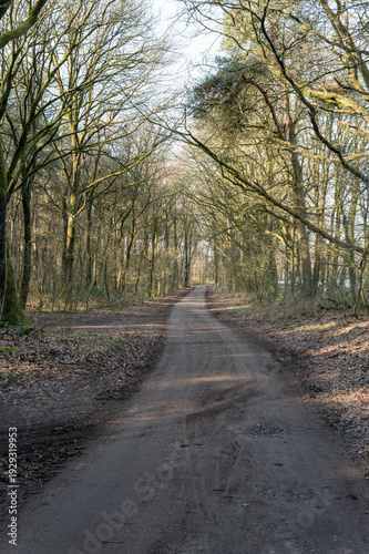 © Ulrich, Obraz premium Dirt path winding through forest in borken, germany