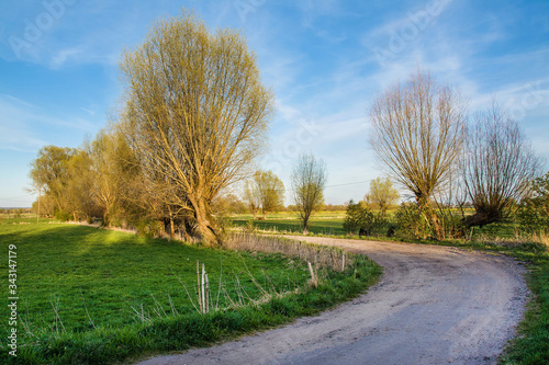Fototapeta premium dirt road and trees, beautiful spring landscape