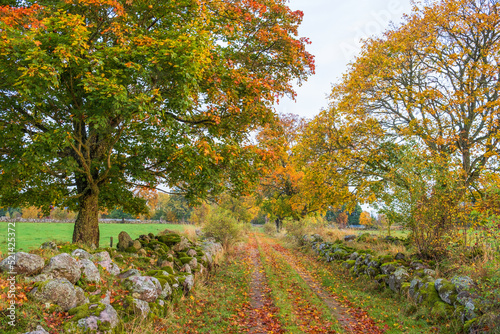 © Lars Johansson, Naklejka premium Dirt road in a rural landscape with autumn colors