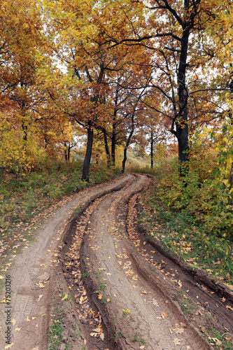 Fototapeta premium dirt road in autumn forest