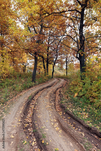 Naklejka premium dirt road in autumn forest