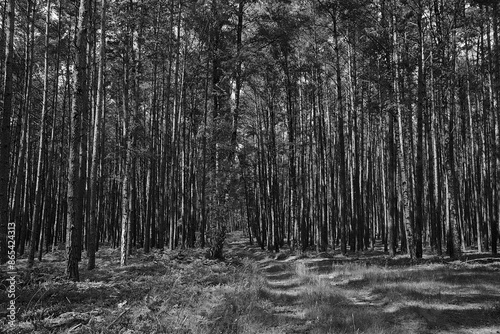 © GKor, Fototapeta premium dirt road in dense mixed forest on a sunny day in summer