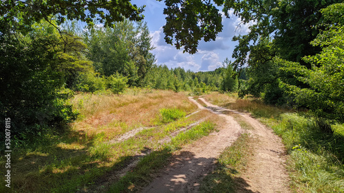 © tarasylo, Naklejka premium dirt road in the countryside in summer between trees