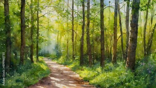 © Tark, Fototapeta premium Dirt road in the forest in oil painting. Generative AI