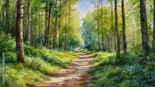 © Tark, Fototapeta premium Dirt road in the forest in oil painting. Generative AI