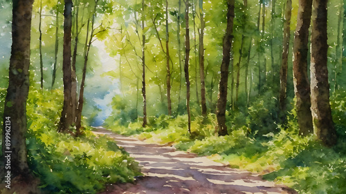Fototapeta premium Dirt road in the forest in oil painting. Generative AI