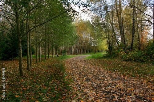 © Dee, Fototapeta premium Dirt road lined with fall trees