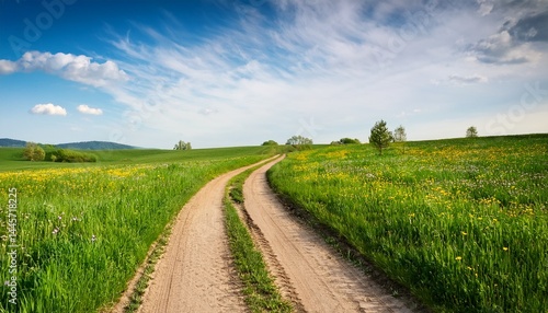 Obraz premium dirt road on spring meadow