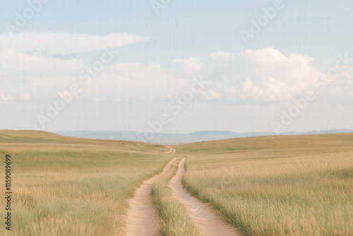 © syntograma, Fototapeta premium Dirt Road Through Golden Wheat Fields Under a Cloudy Sky