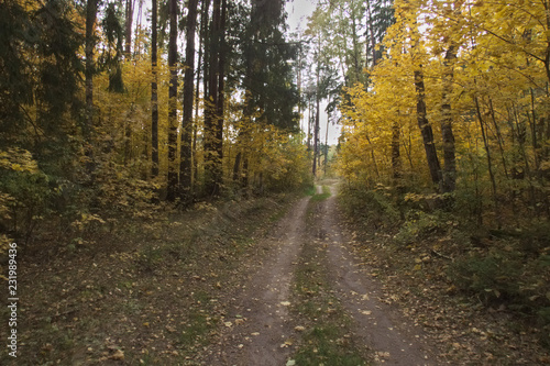 © Alexey, Fototapeta premium Dirt road through the autumn forest
