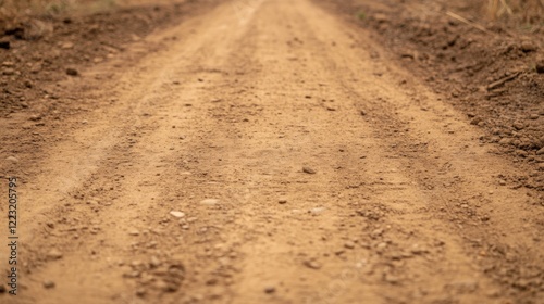 Naklejka premium Dirt road vanishing point, tire tracks on dry brown soil.