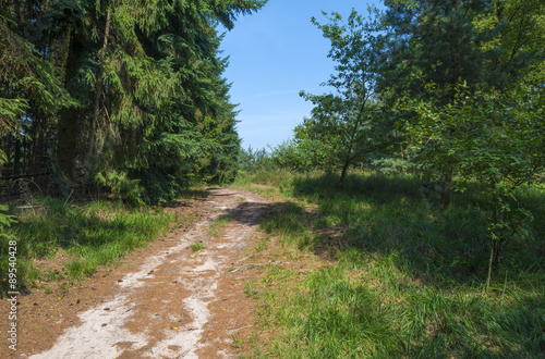 Obraz premium Dirt track through a forest in summer