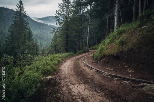 © AkuAku, Obraz premium Dirt trail winding through forest