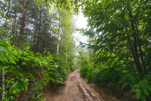 © rastkobelic, Fototapeta premium Dirty, country road through mountain forest