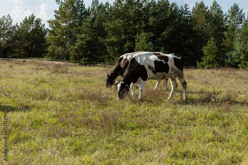 © agnieszka_marcinska, Fototapeta premium Dirty cow eating grass