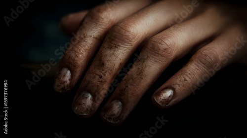Fototapeta premium Dirty fingernails highlighting the need for hygiene awareness