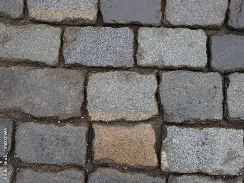 Fototapeta premium dirty gray cobbled road perspective