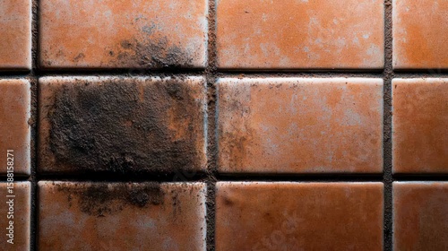 Naklejka premium Dirty orange tile floor, kitchen grime