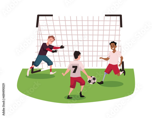 © sabelskaya, Fototapeta premium Disability people, children playing football, vector illustration