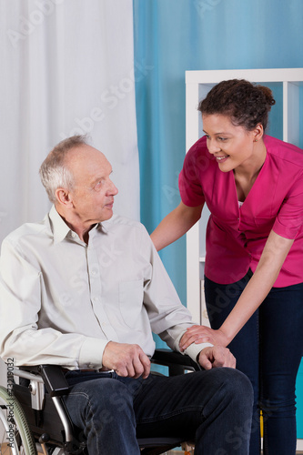 © Photographee.eu, Obraz premium Disabled man on wheelchair and nurse