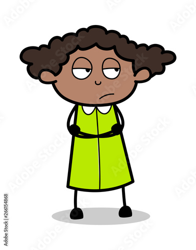 Obraz premium Disappointed Face - Retro Black Office Girl Cartoon Vector Illustration