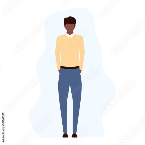 © Віталій Баріда, Fototapeta premium Disappointed sad young african man standing alone. Unsuccessful american businessman, manager or worker in flat style vector illustration isolated on white.