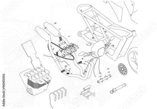 © VLADIMIR NIKIFOROV , Obraz premium Disassembled motorcycle on a white background. Unique design.