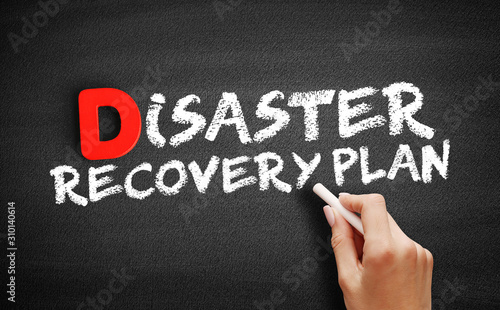 Fototapeta premium Disaster Recovery Plan text on blackboard, business concept background