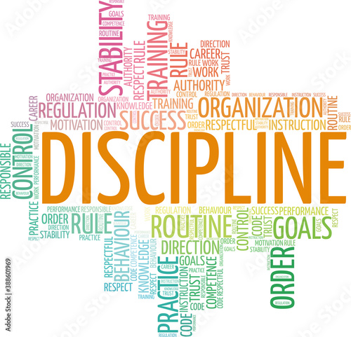 © Colored Lights, Obraz premium Discipline vector illustration word cloud isolated on a white background.