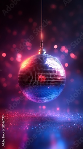 Fototapeta premium Disco ball hanging, reflecting colorful lights.