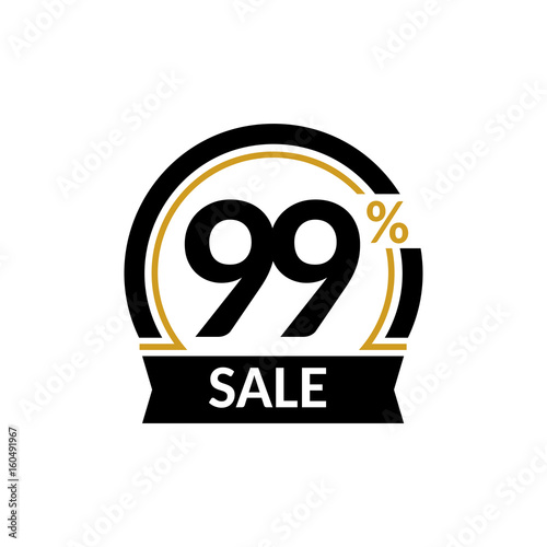 © artyway, Naklejka premium Discount card with 99 percent sale. Advertising Sale vector isolated sign. Promotion Stylish logo design under the black and gold arch.