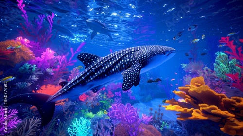 © Philipp, Fototapeta premium Discover an enigmatic underwater city with coral shaped structures that emit a soft glow
