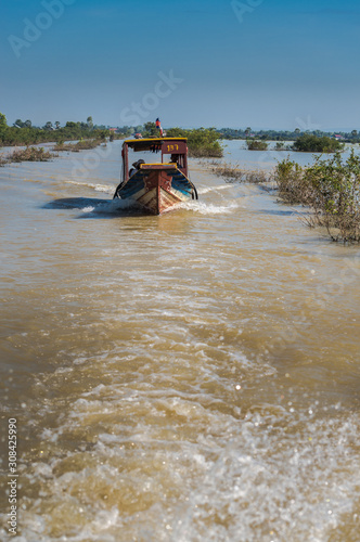 Fototapeta premium Discover Cambodia and its people and landscape where people live in floating villages and commute on boats. They live from fishing and farming