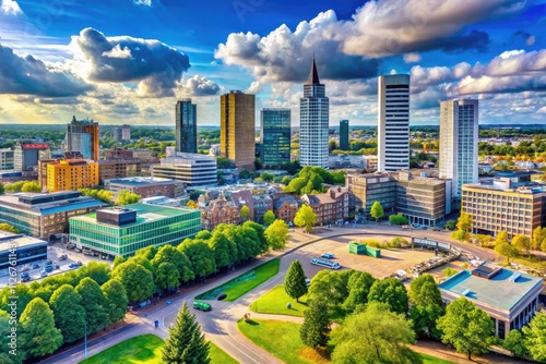 Naklejka premium Discover Eindhoven: a Dutch city where business meets tourism, offering a stunning skyline panorama.