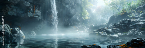 © GG Kenji, Fototapeta premium Discover Intense Energy: Volcanic Basin Hot Springs in Dramatic Landscapes Photo Realistic Stock Concept
