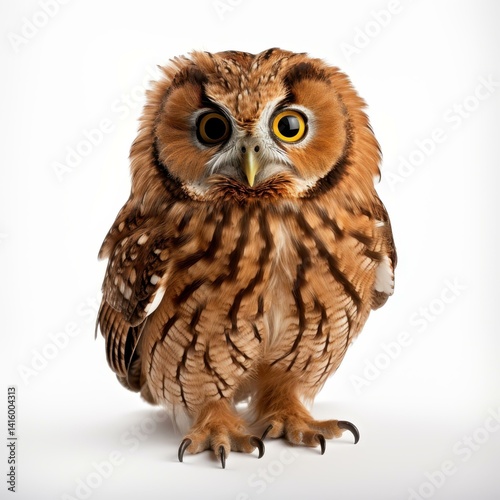 Naklejka premium Discover the beauty of a handcrafted owl design, showcasing intricate details set against a white background.
