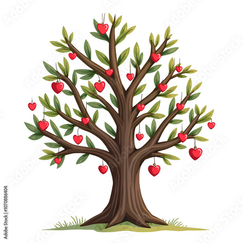 Fototapeta premium Discover the beauty of love and prosperity intertwined in the unique heart tree of life, digital illustration of symbolism concept.