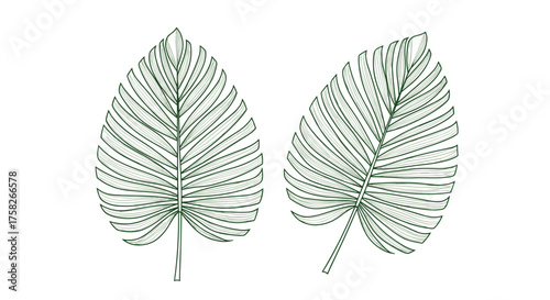 Obraz premium Discover the intricate beauty of delicate green palm leaves outlined in a detailed illustrative style.