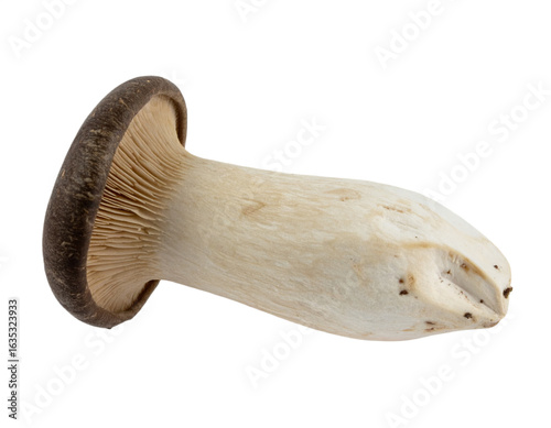 Fototapeta premium Discover the unique texture and natural form of a king oyster mushroom, perfect for culinary creations