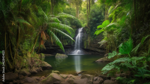 © Andrii , Obraz premium Discovering a Secluded Tropical Waterfall