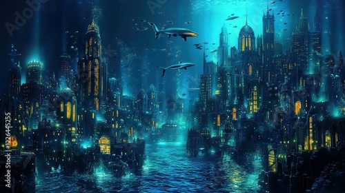 © fourtakig, Obraz premium Discovering the majestic underwater city a visual journey into bioluminescence
