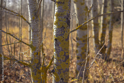 © Anton, Fototapeta premium Disease of trees. Orange growths on the bark of trees.