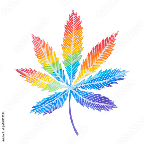 © Artistic Memory, Fototapeta premium disegno colorato arcobaleno foglia di cannabis marijuana