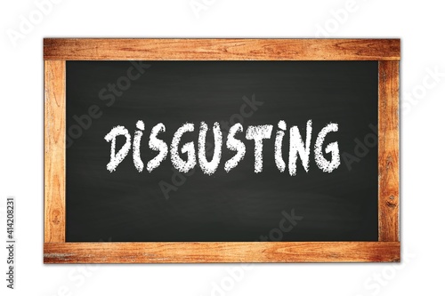 Fototapeta premium DISGUSTING text written on wooden frame school blackboard.