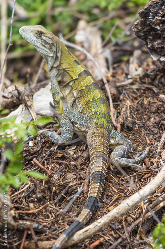 © Elehi, Obraz premium Disparo vertical de una iguana joven salvaje en el suelo