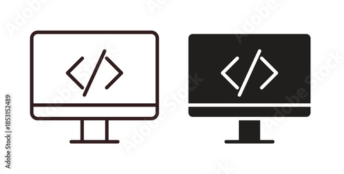 © iconic, Fototapeta premium Display code icons. thin line and glyph vector icons pack on white background