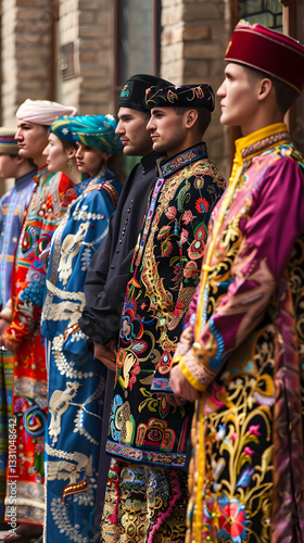 Fototapeta premium Display of Elaborate Uzbek Traditional Attire: A Vibrant Showcase of Cultural Heritage and Artistic Craftsmanship