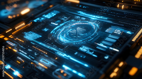 © Nattavee, Obraz premium display with layered digital interface and interactive glowing elements